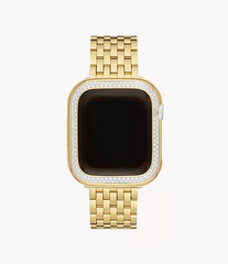 Elevate your Apple Watch® with a two-tone 18K gold-plated diamond case for Apple Watch® featuring our signature MW-pattern hand-set with 139 diamonds (0.80 carat weight). Pair with a signature seven-link bracelet band in your favorite plating with this luxe diamond encasement for a chic, personal touch. Compatible with your Series 6 Apple Watch® in size 40mm.