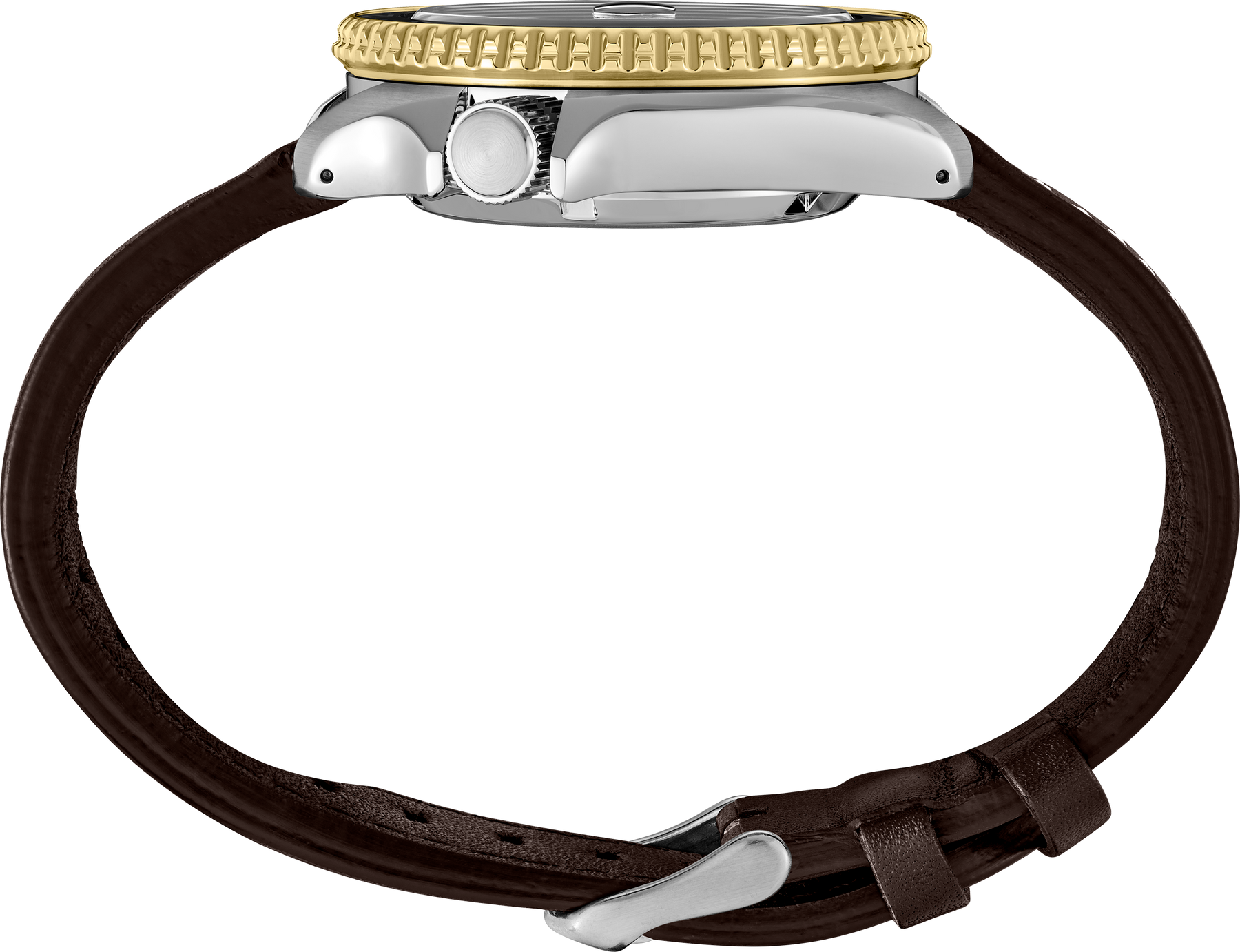 • Sleek black and dark brown bi-color 24-hour GMT bezel
